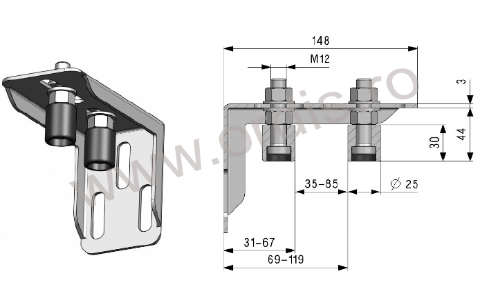 Placa de ghidaj cu 2 role reglabila UGP35-85-2PLACA