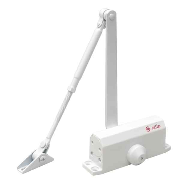 Amortizor hidraulic cu brat SA-5012AWw pentru usi. Acest model de amortizor hidraulic functioneaza cu usi cu o greutate cuprinsa intre 25 si 25 de kilograme si cu o latime de ≤900mm. Este de culoare alb si se poate monta atat pe stanga cat si pe dreapta.