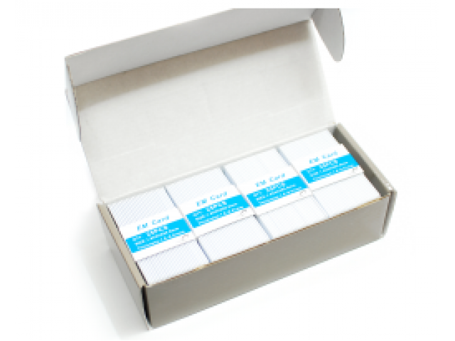 Pachete de 100 de cartele de proximitate numerotate secvential cu cip EM4100. Aceste cartele functioneaza pe frecventa de 125KHz..Sunt printabile pe ambele parti si pot fi folosite in diverse locuri si situatii, fie ca vorbim de interfon, control acces sau in situatii stricte de securitate. Sunt potrivite ca dimenisiuni pentru a fi purtate in portofel.