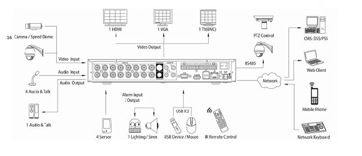 | Alarm Input | 4 channel | 8 channel | 16 channel | |