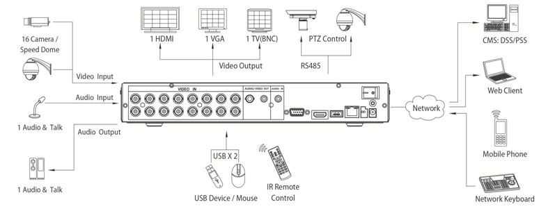| Record Rate | Main Stream: | 960H/D1/HD1/2CIF/CIF(1~25/30fps) | ||