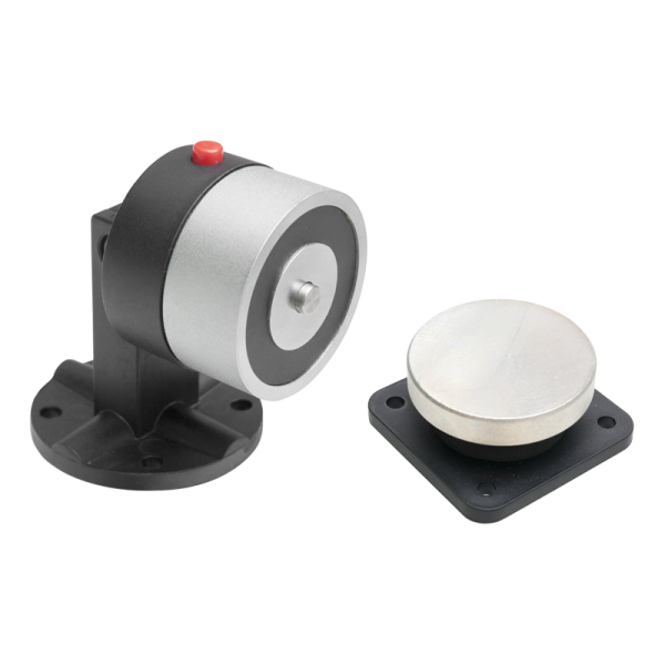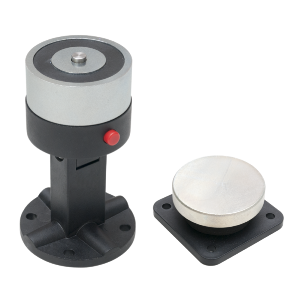 Electromagnet de retinere usa deschisa SD-60 potrivit pentru usi cu deschidere de 90°. Poate fi folosit atat la iesiri de urgenta cat si la usi normale.