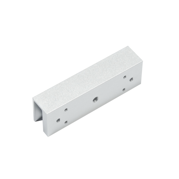 Electromagnetul se monteaza aplicat direct pe tocul usii, iar contraplaca se monteaza pe usa de sticla cu ajutorul acestui suport U