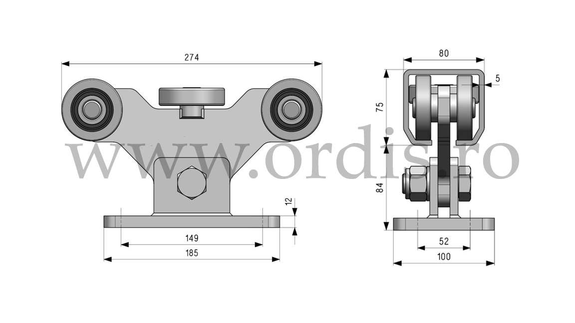 2 carucioare (G75/5) cu 5 role, galvanizate