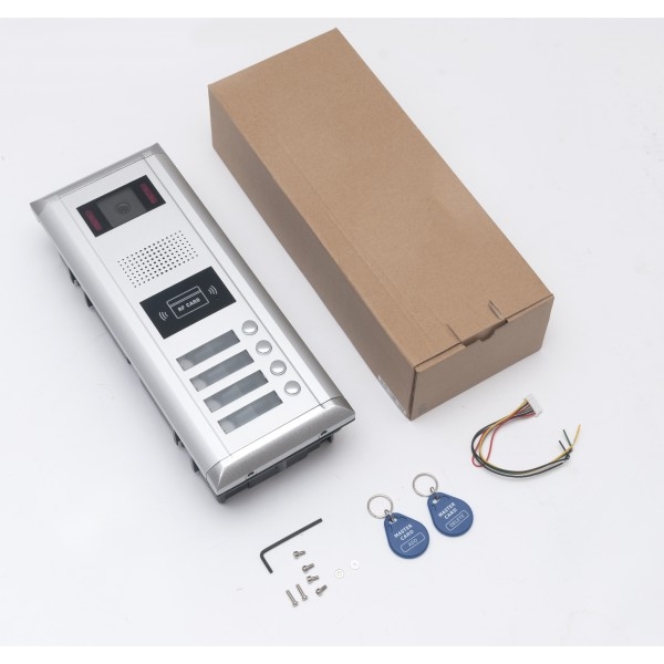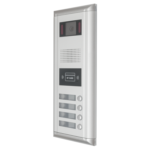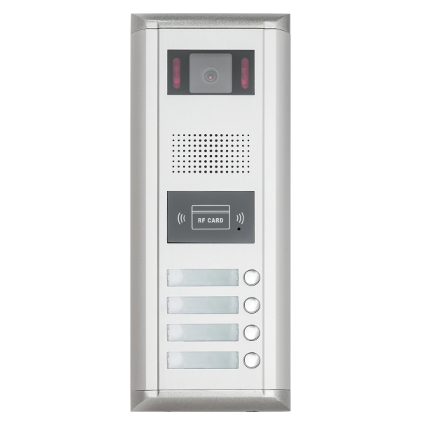 Panou apel exterior DMR11/S4 cu 4 butoane, pentru 4 apartamente. Acest panou de apel video va permite sa vedeti cine va apeleaza, cine doreste sa intre in scara de bloc sau complexul rezidential. Ofera un grad ridicat de securitate, prin identificarea exacta a persoanelor ce vor sa intre in scara de bloc. Acest panou apel pentru exterior are 2 fire, unul pentru alimentare si unul pentru comunicare.