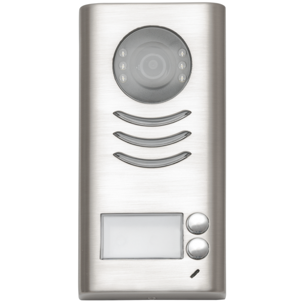 Post de apel video color exterior DT592/C/RH cu protector de ploaie si conectare cu 2 fire, unul pentru alimentare si unul pentru comunicare. Se monteaza aplicat si care o carcasa metalica. Acest post de apel video are doua butoane de apel, pentru 2 apartamente, sau doua parti ale unei rezidente.