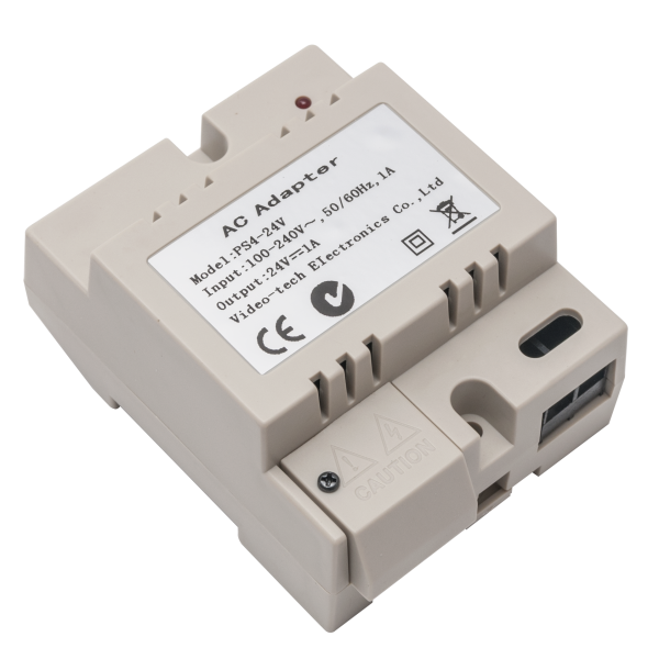 Sursa de alimentare PS4-24V cu conexiune pe 2 fire pentru sisteme cu un post exterior si cu pana la 4 posturi interioare. Aceasta sursa alimenteaza intreg sistemul.