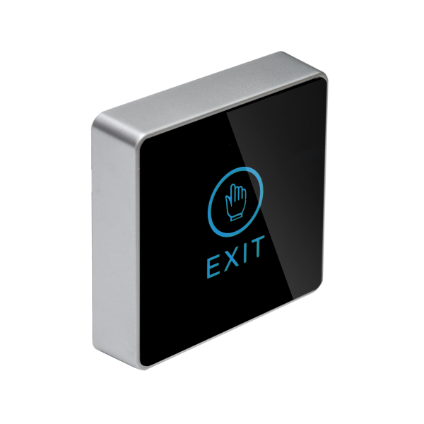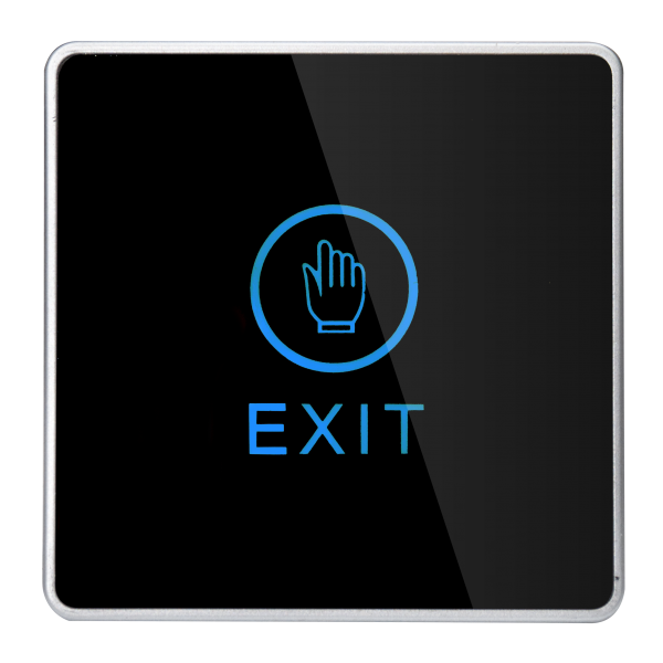 Buton de iesire aplicabil ABK-820B din plastic. Acest buton are touchscreen si led ce lumineaza albastru cand este in standby si rosu cand este activat.