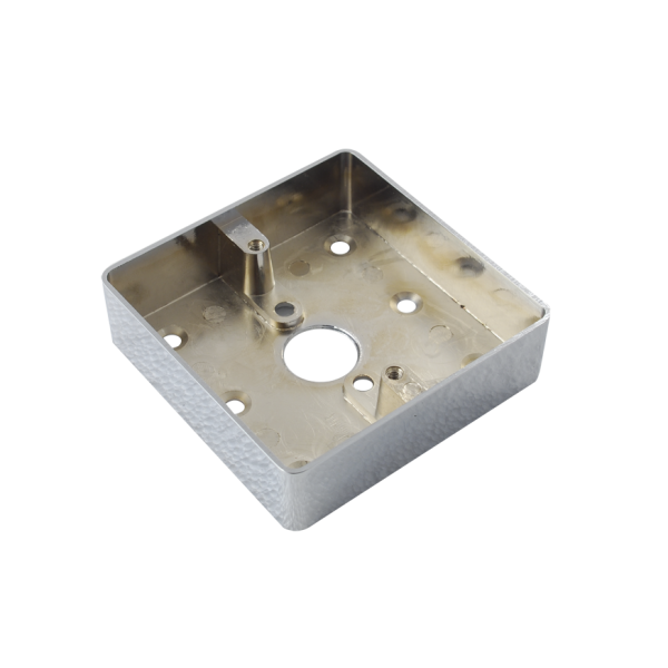 Carcasa ABK-801B-M pentru montarea aplicata a butoanelor din metal. Are urmatoarele dimensiuni: 86x86x25 mm.