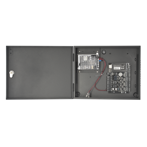Acest model de centrala de control acces TCP/IP CCA3-2-2 CAB+ poate fi folosita pentru 2 usi bidirectionale cu cabinet metalic. Acest produs are o sursa de alimentare la 220Vca si incarcator de acumulator.