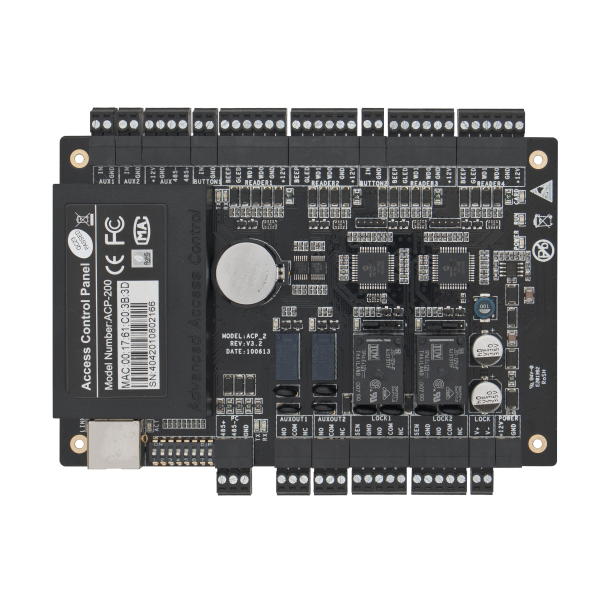 Centrala de control acces TCP/IP CCA3-2-2. Acest produs are urmatoarele caracteristici: are inclusa o aplicatie de tip server, alimentare pentru yale, conectori butoane de iesire, deschidere multicartela, interlock, duress, intrari si iesiri programabile etc.