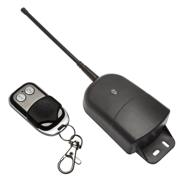 Set de radio comanda AJ-84-2 cu doua canale, ce actioneaza la o distanta de 200 de metri. Acest produs contine un receptor cu doua relee si o telecomanda cu doua butoane (cod saritor). Setul de radio comanda AJ-84-2 poate fi folosit pentru comanda barierelor, incuietorilor electrice, sistemelor de alarma etc. Mai mult se permite stergerea selectiva a telecomenzilor (nu este necesara stergerea tuturor telecomenzilor pentru a elimina doar una).