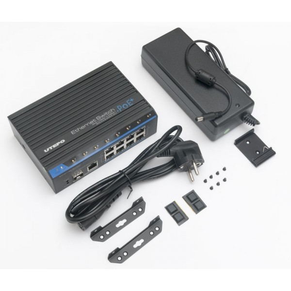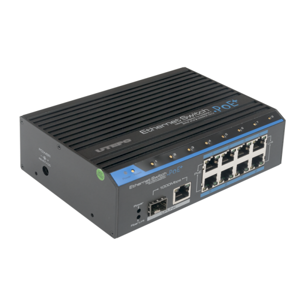 Switch UTP7208E-POE fara managment cu functie PoE+. Acest model de switch are 8 porturi PoE 10/100 Mbs pentru conectarea diverselor dispozitive compatibile cu acest standard, precum camere IP, telefoane Ip, separatoare PoE sau puncte de acces. Pe langa acestea mai are doua porturi separate pentru conectarea cu alte tipuri de switch-uri, un port este de tip ethernet iar celalalt este SPF cu o viteza de 1000 Mbps. Acest switch este de ultima generatie, permite conectarea uplink-ului ethernet la o distanta ce ajunge pana la 150 de metri si dispozitivele PoE la peste 100 de metri.