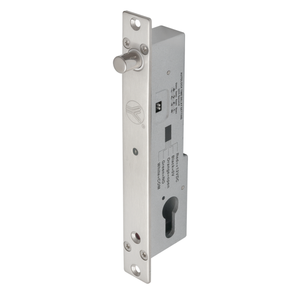 Bolt electric YB-500C cu temporizare, senzor magnetic, monitorizare si cilindru cu cheie. Are de asemenea un led de stare pe partea frontala. Se foloseste in sisteme de control acces.